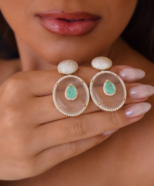 Brinco Acetinado Pedra Turmalina Paraíba e Base com Cravações